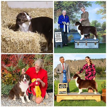 2025: Rally Grand Champion, delivered her second litter of 7 gorgeous puppies (repeat breeding with Breve) with three held for show and performance homes. She is currently the #1 Aussie, #2 Herding and #4 All breeds in Rally obedience in Canada. She is also half way through her Master Excellent titles in agility. In 2025 she FINALLY found 4 gerbils in 3.5 minute while tunnelling and climbing to acquire her RATS title!